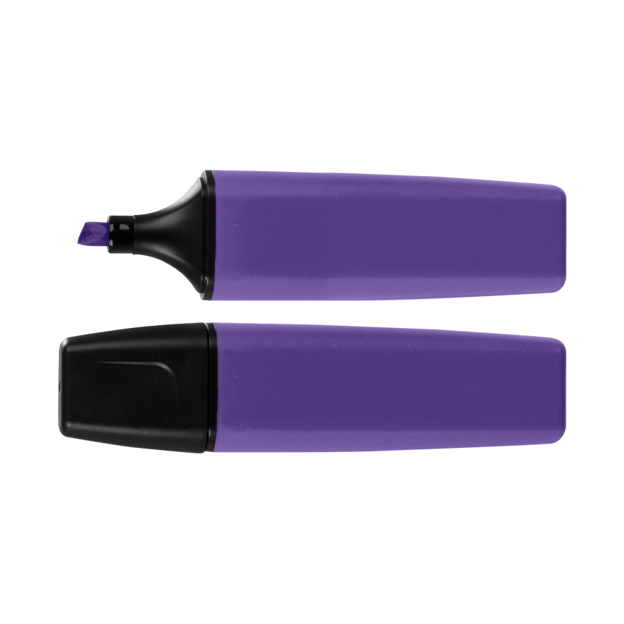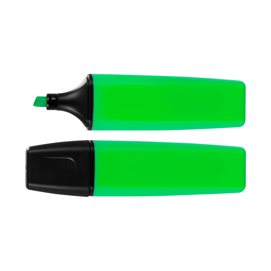 Destacador – Resaltador “HIGHLIGHTER” punta cincel 5mm, con cuerpo plástico plano de color sólido y tapa plástica negra, con amplia superficie para impresión de logo y mayor cantidad de tinta.