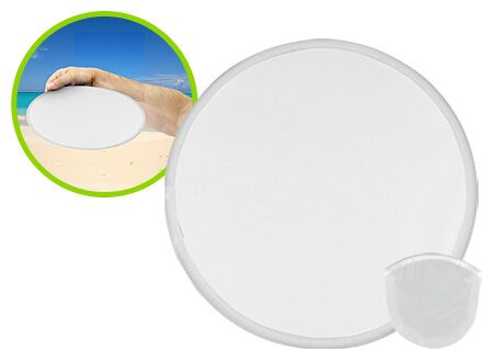 Frisbee (disco volador) plegable de poliéster. Se guarda plegado en mini-funda de poliéster. Simple, económico y fácil de imprimir, ideal para promociones de verano. Tamaño: Frisbee Ø 24.7 cm / Mini-funda 9.5 x 10 cm aprox.