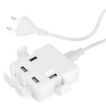 Hub USB 2.0, 4 puertos modelo “Power Strip”, en plástico ABS blanco, con amplio espacio para logo. Incluye cable para enchufe de 1.5m de largo. Input AC 100V-240V / USB output: DC 5V 4A. Presentación en estuche de cartón blanco.