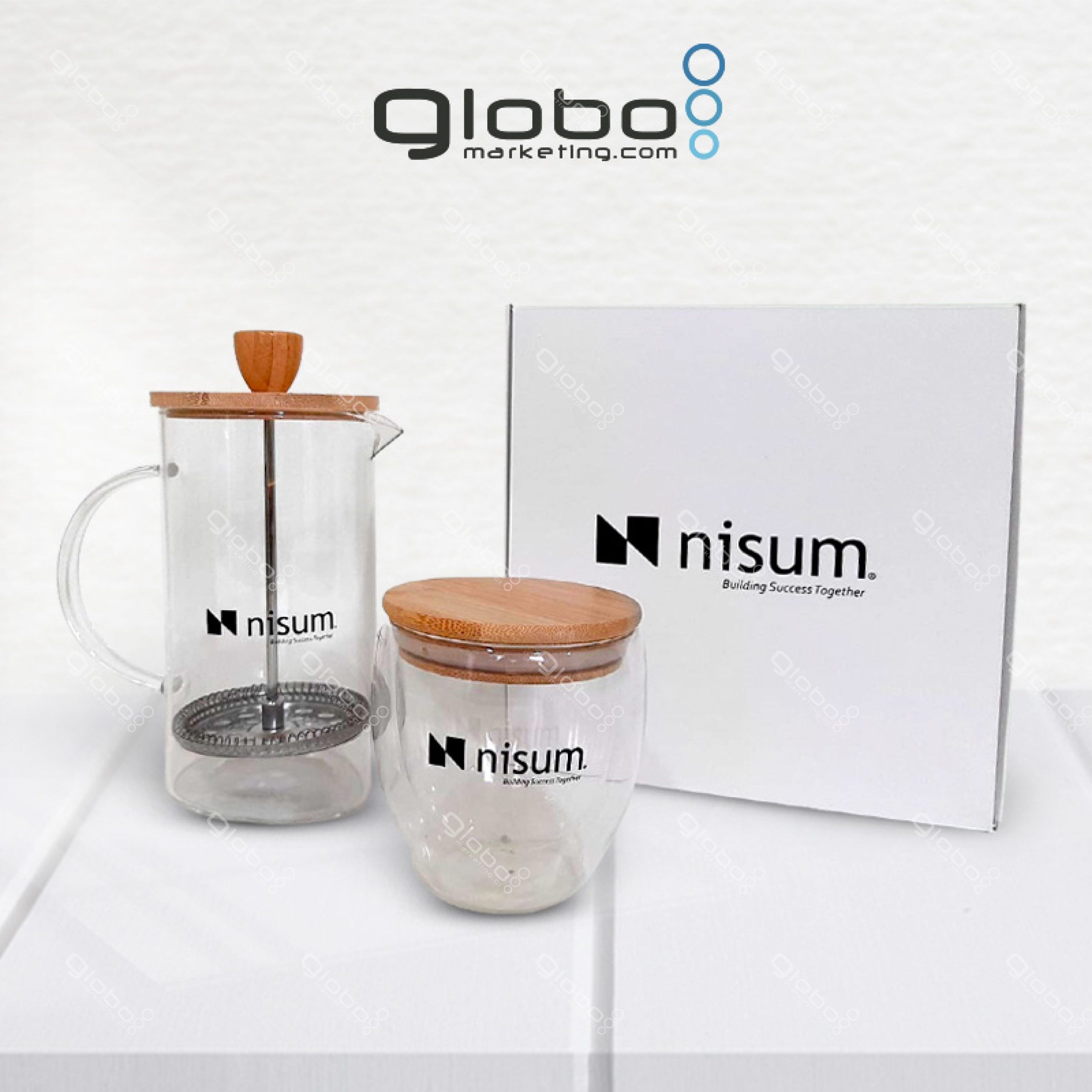 Este kit está formado por: Cafetera Prensa Francesa con filtro de aluminio. Ø 8 x 18 cm. Capacidad 600ml. Vidrio de Borosilicato + Tapa de bambú. Taza de doble vidrio con tapa de bambú que ademas se puede utilizar como posa taza/vaso de Ø 9 x 9,5 cm y tapa de bambú de Ø 9. Capacidad 250ml. Vidrio y Bambú. Presentación en caja de regalo Kraft.