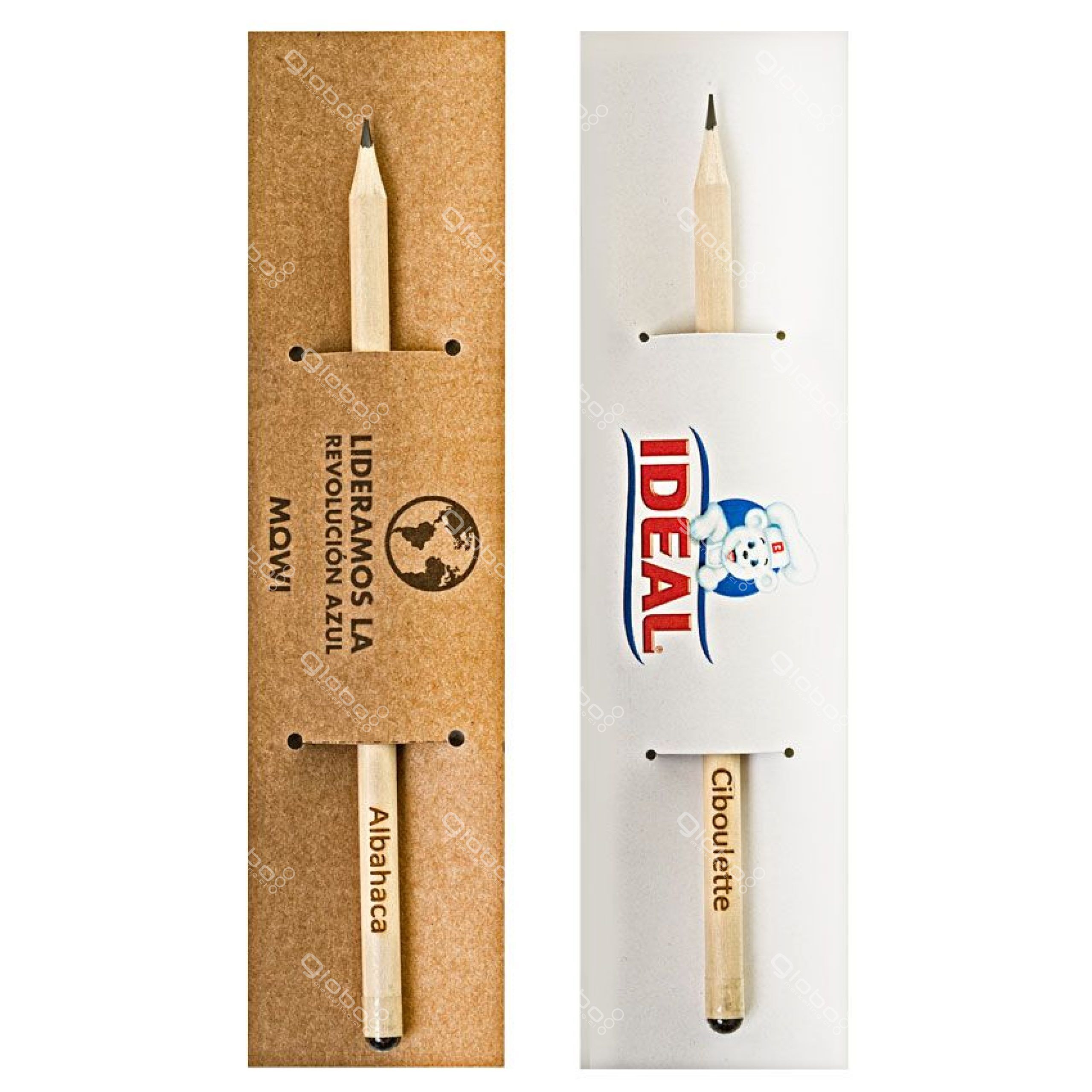 -6 lápices grafito madera natural grabados con laser con el nombre de la semilla que contiene (17 x 0,7 cm) -6 cápsulas biodegradables con semillas variedades (albahaca, perejil, tomate, lechuga, espinaca, ciboulette, rúcula) -Instrucciones de siembra -Tubo de cartón reciclado (19 x 2,5 cm) -Etiqueta de cartulina Kraft o blanca impresa con diseño/logo cliente (6 x 6 cm) -Amarre con cordel de yute Opcional: Grabado láser logotipo sobre el estuche del cartón (mínimo 200 unidades)