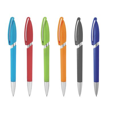 Plástico. Apertura retráctil con pulsador. Clip plástico, color plata en puntera y cuerpo. Tinta negra.