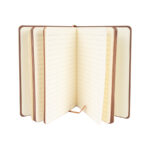 Libreta tamaño A6, con cubierta de PU eco-cuero de 2mm de espesor y lomo pintado de color al tono. Interior 80 hojas lineadas amarillas de 80gsm. Incluye banda separador de hojas al tono. Presentación individual en bolsa de polipropileno.