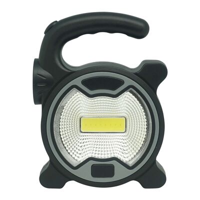 13,1 x 10 x 3,6 cm. Plástico ABS. Linterna con 8 luces led y 1 led blanca. Cuenta con una manija con botón que permite encender las luces, en la primera presión enciende las 8 luces y volviendo a presionar enciende la luz led. Incluye 3 baterias.