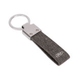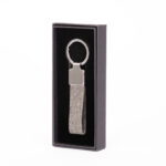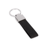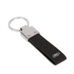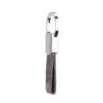 6,3 x 1,4 cm. Metal y símil cuero. Llavero plano con detalles en la parte superior símil cuero. Presentación en