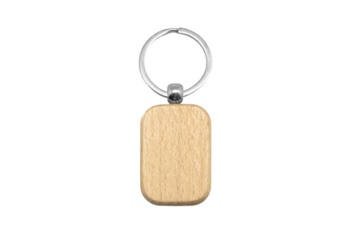 4,2 x 3 x 0,7 cm. (La medida no incluye el aro) Madera. Llavero rectangular con arandela metálica.