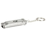 Multiherramienta metálica plegable de 10 funciones, con llavero. Incluye mini-regla en cm y pulgadas. Presentación en estuche de polyester negro y caja plateada de regalo.