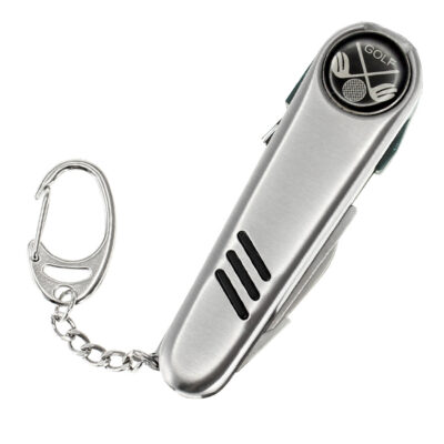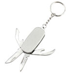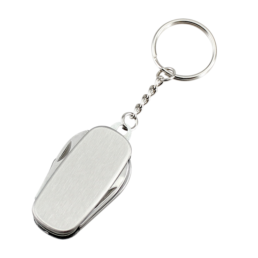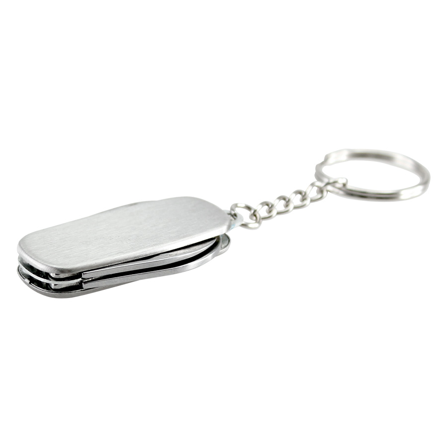 Llavero multiherramientas de Acero Inoxidable con 5 funciones. Presentación en cajita de regalo plateada.