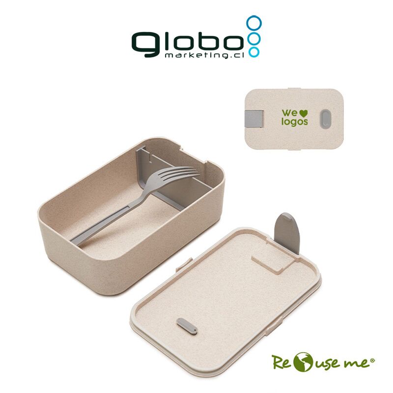 Contenedor de alimentos realizado en PP y pasta de paja de trigo y PP, un material sustentable que reduce el consumo de plásticos vírgenes. Posee panel divisor interno móvil, para colocar diferentes alimentos. Tapa con traba y espacio para apoyar tenedor. Medidas: 19,2 x 12 x 12 cm. Reuseme.