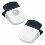 Magne-Clip Grande con base cuadrada y mango de goma negra. Amplia superficie para impresión de logo.