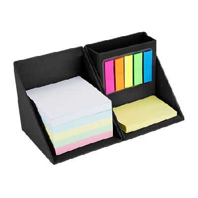 Memo set Ecológico retráctil con forma de Cubo en Cartón. Incluye 500 hojas de notas adhesivas cuadradas de colores, 50 notas adhesivas amarillas medianas, 125 banderitas adhesivas de colores y un compartimento porta-lápices.