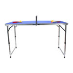 Mesa de Mini Ping-Pong plegable, cubierta azul de MDF 9mm y estructura de aluminio. Incluye 1 red, 2 paletas y 3 pelotas de Ping-Pong.