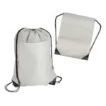 Mochila modelo “Cooler” de poliéster 210D/PU, interior tela aislante gris 12C PEVA, con relleno de esponja PE FOAM de 2mm. Ojetillos reforzados con PU negro. Bolsillo delantero exterior. Tiras de cordón negro.