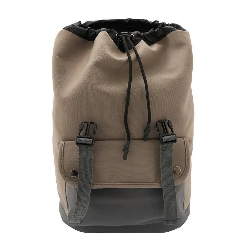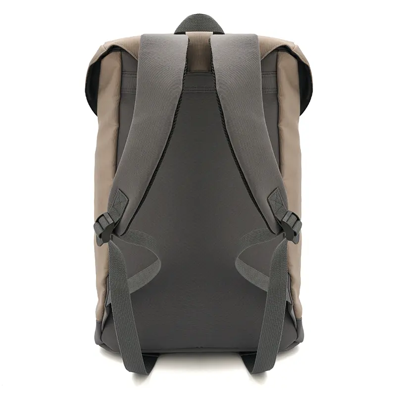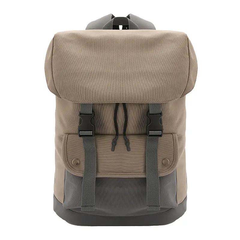 Descripción general del producto: Mochila compacta con solapa y doble broche frontal. Está confeccionada en polycotton laminado 600D. Cuenta con cierre interior, bolsillo frontal y correas acolchadas ajustables. Incluye tirador superior, base reforzada y espalda acolchada.