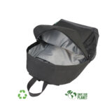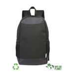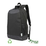 Mochila Porta-Notebook modelo “RPET”. Fabricada en material reciclado RPET y poliéster 250D/PVC. Capacidad 20 litros, tamaño 29 x 48 x 14.5 cm. Incluye compartimento interior reforzado y acolchado para Laptop, bolsillo delantero y 2 bolsillos laterales con malla.