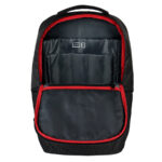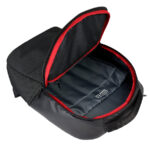 Deluxe Mochila Porta-Notebook modelo “WENZER”. En tela poliéster mallado con membrana epitelial + eco-cuero PU 840D. Capacidad 16 litros, tamaño 30 x 44 x 12 cm. Cuenta con compartimiento delantero para notebook y tablet, + bolsillo delantero + compartimento principal con apertura posterior lateral (en vertical) de seguridad, para acceso directo a la notebook. Sujetador de Carry-on. Espaldar y correas regulables acolchados, y un cuarto compartimento (bolsillo) en el espaldar, para guardar elementos pequeños con máxima seguridad anti-robos.