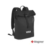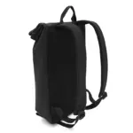 Mochila con cierre enrollable y acceso frontal confeccionada en PU. Cuenta con apertura superior con tira y hebilla metálica, bolsillo con cierre al frente, espalda acolchada y correas ajustables. En su interior cuenta con un espacio para PC y dos bolsillos pequeños sin cierre. Incluye manija superior y diseño compacto.