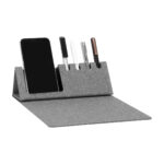 MADRID reinventa el concepto de accesorios de escritorio con un mousepad multifuncional fabricado en tela RPET gris. Su diseño plegable permite utilizarlo también como soporte para celular y portalápices, optimizando espacio sin renunciar al estilo. Este accesorio representa eficiencia, innovación y conciencia ambiental en una sola pieza. Al personalizarlo, tu marca acompañará cada jornada de trabajo con un mensaje claro de funcionalidad sustentable.