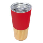 Mug de metálico doble pared aislante, interior Acero inoxidable 201 SS, exterior cubierta inferior de bamboo y cubierta superior de Acero inoxidable 304 SS, modelo “AURUS”. Producto BPA FREE, para el contacto con líquidos y alimentos. Fondo de silicona negra ABS anti-deslizante. Tapa removible de plástico PS Crystal Clear con sello cilíndrico de silicona y sistema de cierre/apertura antiderrame. Capacidad 500ml. Presentación en bolsa OPP + caja de regalo de cartón kraft.