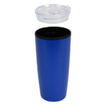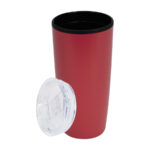 Mug metálico doble pared aislante, interior plástico PP, exterior Acero inoxidable 201 SS, recubierto con pintura POWDER COAT, modelo “LOFT”. Producto BPA FREE, para el contacto con líquidos y alimentos. Fondo de silicona negra ABS anti-deslizante. Tapa removible de plástico PS Crystal Clear con sello cilíndrico de silicona. Capacidad 600ml. Presentación en bolsa PP + caja de regalo de cartón negro.