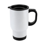Mug Térmico Blanco de doble pared aislante, interior de acero inoxidable. Tapa, asa y base plástico negro. Cobertura exterior con polímero especial marca ORCA COATINGS(R) para una sublimación de primera calidad. Cada unidad se entrega dentro de su caja individual de cartón blanco.