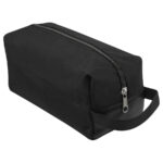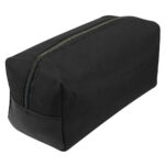 Necessaire rectangular de microfibra negra. Terminaciones en simil cuero negro.