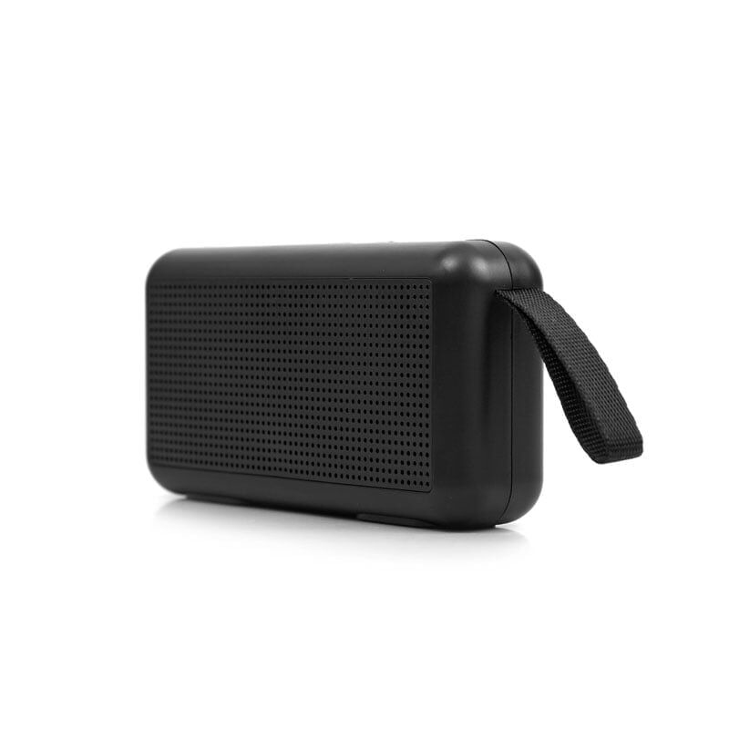Parlante portátil con tecnología Bluetooth, micrófono manos libres y modo radio FM, realizado en ABS. Incluye ranura para lectura de tarjetas de memoria micro SD. | Batería de 500mAh | Potencia del parlante: 3W | Conexión5V/300mA | Peso: 160g | Medidas120 x 30 x 60mm | Tahg
