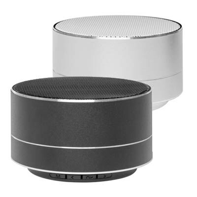 Ø 7 x 4 cm. Metal. Parlante bluetooth. Botones de volumen, encendido, Modo Bluetooth y TF card. En la base detalles antideslizantes. Alcance de transmisión hasta 10 mts. Voltaje DC 5V. Incluye cable USB para carga.