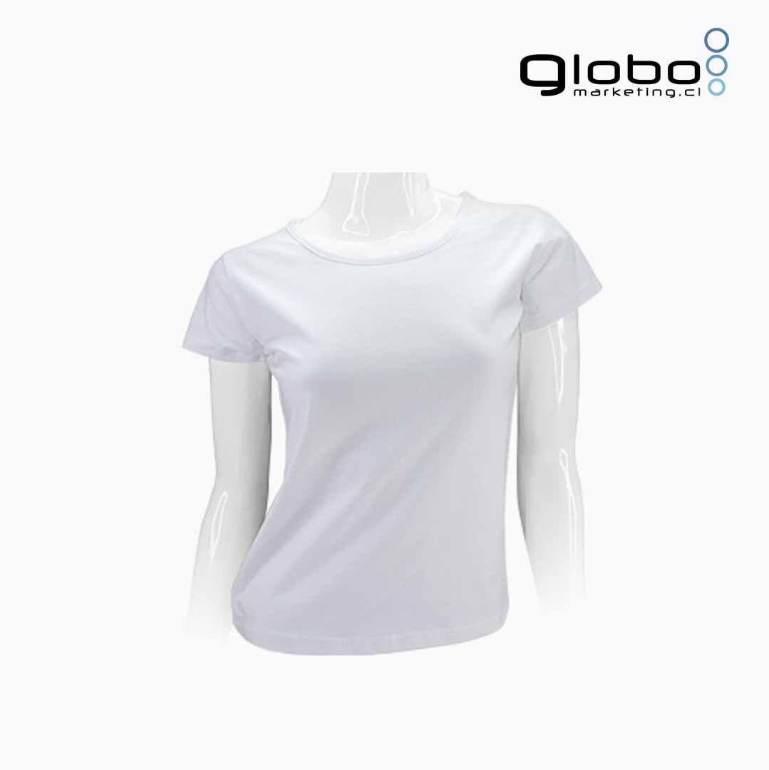 Polera manga corta para mujer, 100% algodón pre-lavado, ideal para regalos corporativos. Personalizable y cómoda, disponible en blanco.