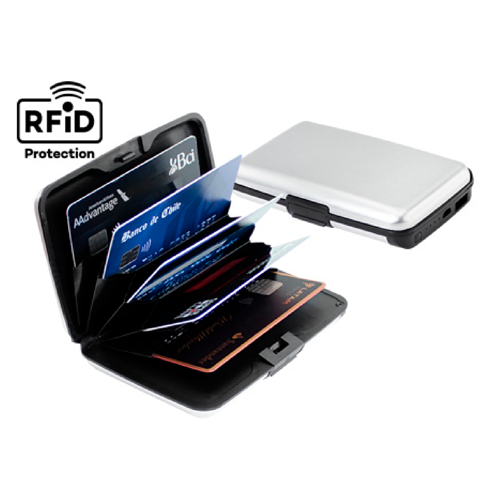 Porta-Tarjetas Anti-Clonación RFID con Power Bank