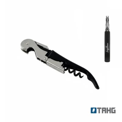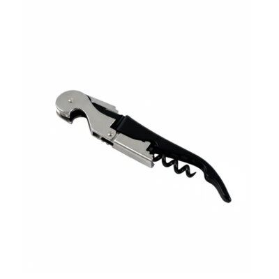 Destapador metálico tipo sacacorchos con diseño ergonómico. Fabricado en acero inoxidable combinado con acero al carbono, lo que garantiza resistencia