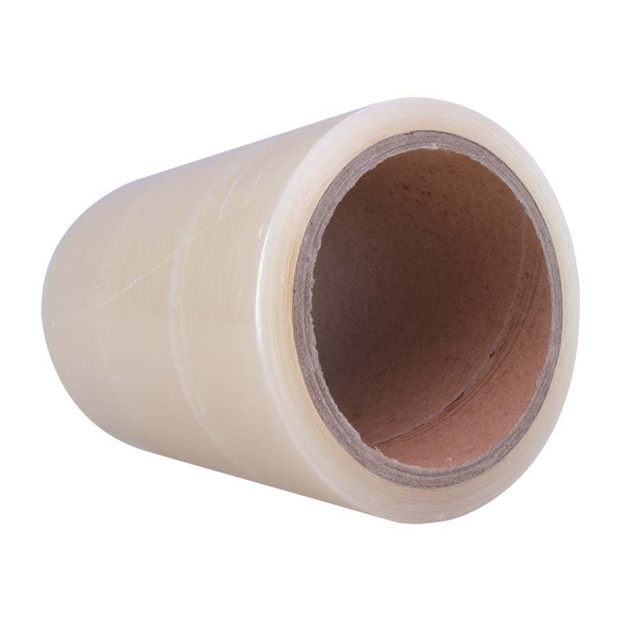 Rollo de 100m de Film plástico adherente, para dispensador de Cubre-Calzado industrial (R17). Ideal para mantener el calzado protegido de virus y bacterias en ambientes protegidos. Producto accesorio complementario del Dispensador de Cubre-Calzado R17, su superficie adherente se pega a la planta del calzado en forma automática en cada pisada dentro del dispensador.