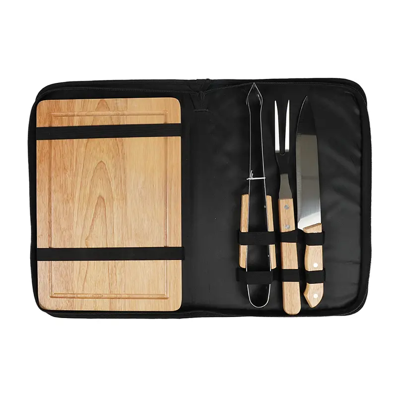 El Set BBQ Brasa es ideal para tus parrilladas y asados. Contiene: 1 tabla, 1 cuchillo, 1 tenedor y 1 pinza. Viene presentado en un estuche de poliéster de alta calidad, perfecto para almacenar y transportar tus utensilios.