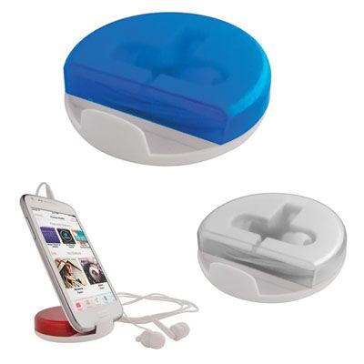 Ø 6,5 cm. Plástico. Auriculares con estuche plástico y soporte para celular. Medida del cable: 1,5 M. Conector mini plug. Sonido stereo.