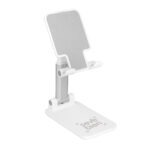 Tu celular, a tu altura.Soporte plegable para móvil. Tiene un sistema extensible de ajuste de altura e inclinación para posicionar el celular. Base con apliques de silicona antideslizantes.Medidas: 11,6 x 8 x 12 cm.