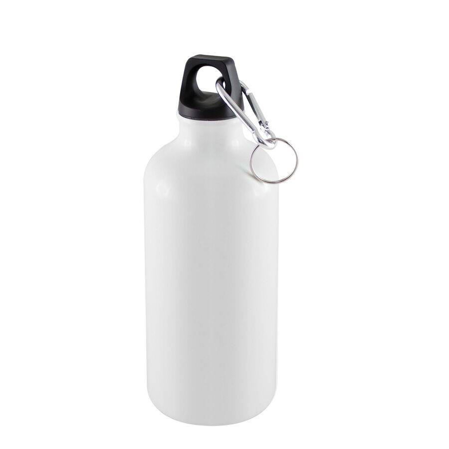 Sport Bottle (Botella deportiva) de 550cc. con cuerpo blanco para Sublimación. Contiene 2 tapas negras para diferentes usos. Presentación en caja de Cartón Blanco.