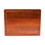 Gruesa tabla de madera sólida de ACACIA, para uso por ambos lados. Un lado con canaleta para cortar carnes y pescados, el otro lado con compartimento para poner verduras picadas, frutos secos o picoteo. Ideal para verduras y/o selección de quesos. Contiene ranuras laterales para tomar la tabla con mayor facilidad. Madera trabajada y acabada en máquina, de forma 100% regular, con superficies, laterales y cantos lisos y suaves, para una mayor higiene y comodidad al momento de cortar y servir alimentos. La Acacia, junto con la Teca, es considerada la mejor, más dura y más resistente madera para utilizar para cortes de alimentos – Densidad aprox. 770kg/m3. – Dureza 9.5 (test de Monnin).