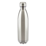 Termo modelo “Botella” de 750cc, en Acero inoxidable, tapa rosca. Presentación en estuche de cartón laminado plateado.