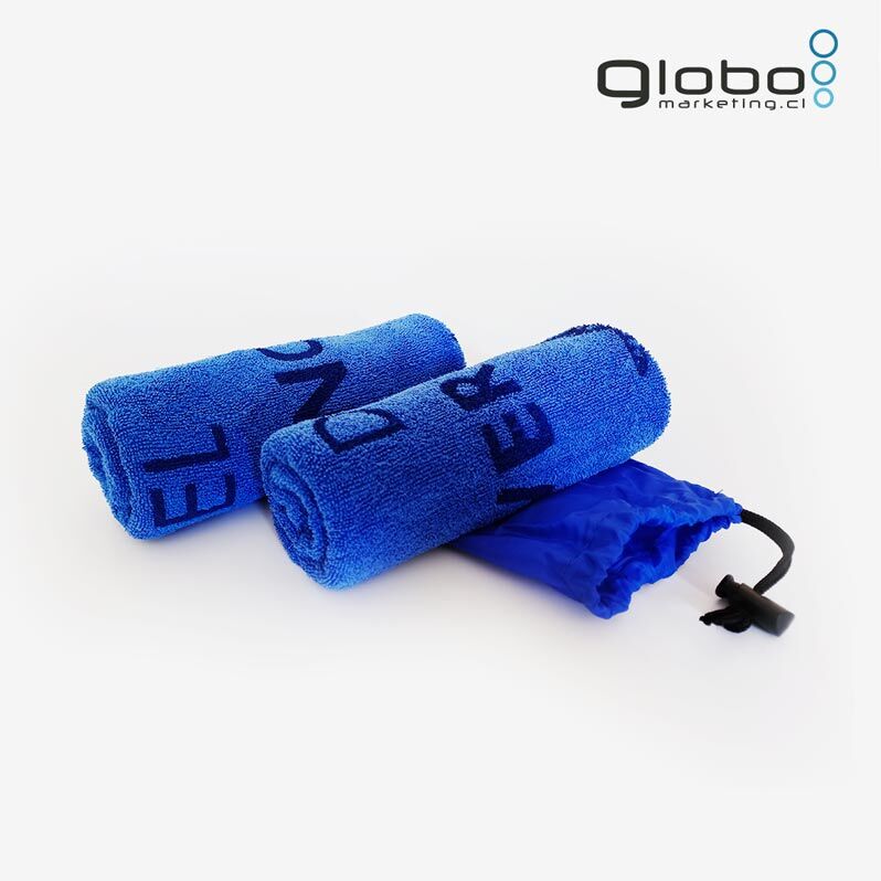 Te invitamos a conocer nuestra Toalla de Microfibra en Bolso, el complemento perfecto para actividades al aire libre y un excelente regalo corporativo. Esta toalla, con un tamaño de 33 x 73 cm, está fabricada en microfibra de alta calidad, lo que la hace extremadamente absorbente y de secado rápido. Viene en un práctico bolso de polyester 210T, disponible en colores blanco, azul y rojo, lo que facilita su transporte y almacenamiento. Además, es personalizable mediante bordado, permitiéndote agregar el logo de tu empresa para un toque especial.