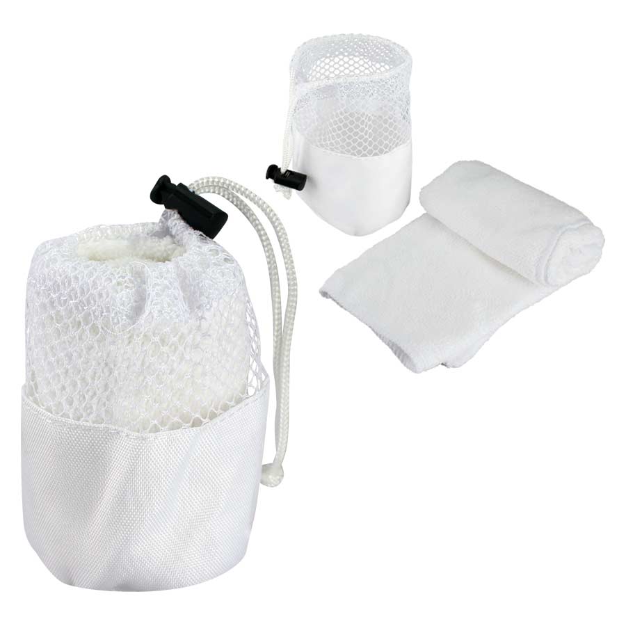 Toalla facial en tela Microfibra para Sublimación. Presentación dentro de bolsito de poliéster con malla.
