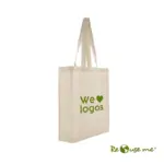 Tote bag fabricada en algodón de 4.5 oz (140 gsm) en color natural, con fuelle. Ideal para quienes necesitan una bolsa de algodón espaciosa y cómoda para el uso diario, para llevar compras, libros o artículos personales. Medidas: 40 x 34 x 9 cm. El producto viene en una bolsa de PLA 100% compostable. ReUseMe