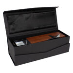Elegante Trofeo de Madera y Cristal modelo “Silver Star””. Incluye estrella de acero inoxidable en una de las aristas de madera. Presentación en caja de cartón forrado negro con cierre imantado, interior acolchado de espuma y tela poliéster satinado negro, con troquel.