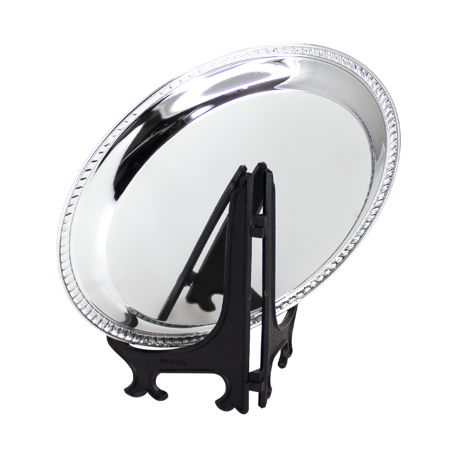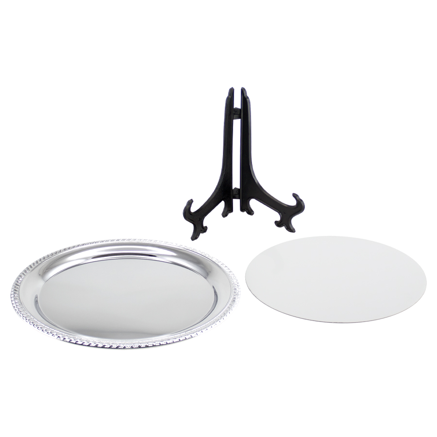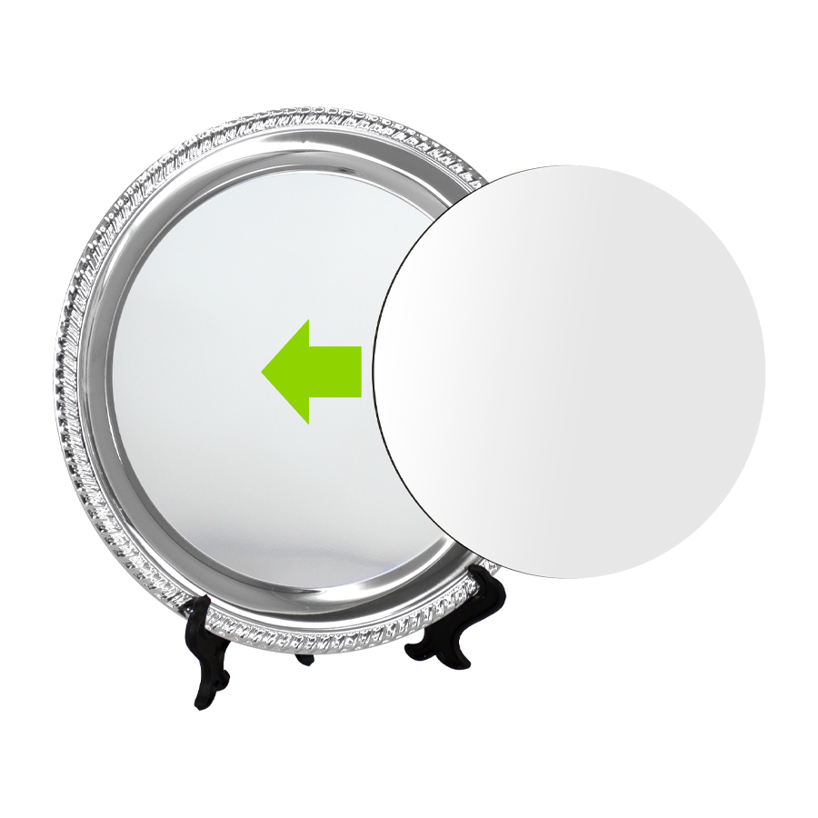 Galvano Plato de Acero inoxidable cromado tamaño grande, con circunferencia metálica para Sublimación. Presentación en bolsa plástica.