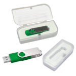 USB 2.0 Pendrive con carcasa metálica de giro, de 16 GB de capacidad. Presentación en caja de PVC traslúcido.