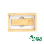 Deluxe USB Pendrive 2.0 de 64GB de capacidad, 100% en madera de Bamboo (barnizado), con carcasa giratoria removible. Presentación en elegante estuche de madera de Bamboo (barnizado).
