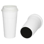 Vaso grande de 480ml. modelo “Cloud” de plástico blanco, con tapa rosca de silicona blanca. Presentación en caja de cartón blanco.