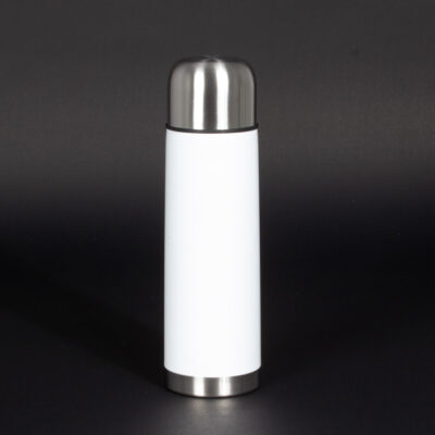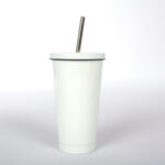 Vaso blanco de Acero Inoxidable, doble pared aislante, con tapa rosca y bombilla de Acero Inoxidable, para Sublimación. Calidad superior “ORCA”. Capacidad 550cc (15oz). Presentación en bolsa blanca + estuche de cartón blanco.