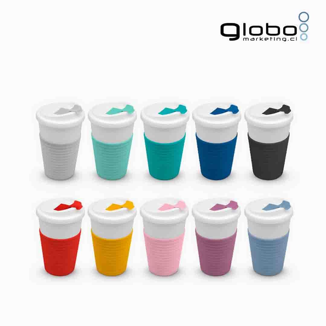 Vaso térmico con tapa anti-vuelco para mantener las bebidas frías o calientes. Reutilizable. Apto para lavavajillas. Plástico BPA free y TPR. Ø 9,5 x 16 cm. Capacidad 330ml. Doble Pared. Tapa a rosca.