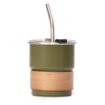 Vaso Térmico metálico “CAMP” 300cc. con Bombilla y Grip de Madera.