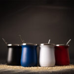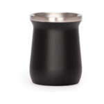 Vaso térmico metálico “MATE” doble pared aislante, cubierta de Polipropileno (PP) acabado mate, interior Acero inoxidable 304 SS, exterior Acero inoxidable 201 SS. Capacidad 300ml. Producto BPA FREE, para el contacto con líquidos y alimentos. Incluye bombilla (cuchara) de Mate de Acero inoxidable. Presentación en plástico burbuja + caja de cartón laminado negro.